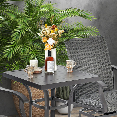 3 Pieces Rattan Rocking Bistro Set with Coffee Table and Cushions
