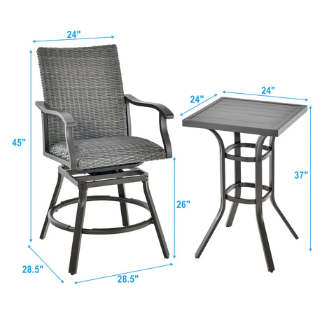 3 Pieces Swivel Bar Set with 4D Air Fiber Cushion