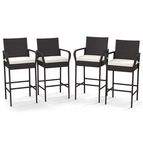 2/4 Pieces Outdoor PE Rattan Cushioned Barstool Set with Armrests