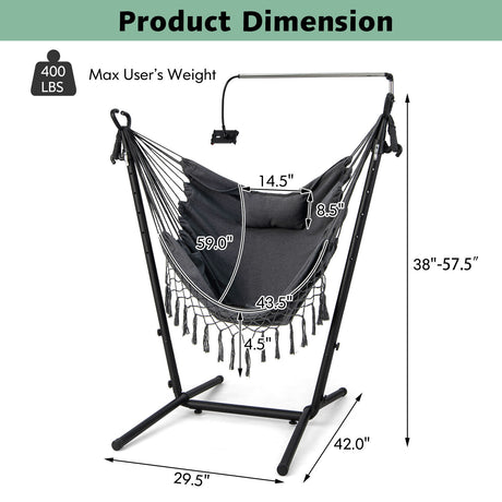 Height Adjustable Hammock Chair with Phone Holder and Side Pocket-Gray