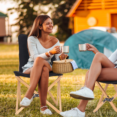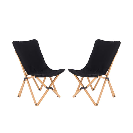 Set of 2 Bamboo Dorm Chair with Storage Pocket for Camping and Fishing