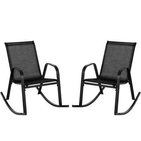 Set of 2 Heavy-Duty Metal Patio Rocking Chair with Breathable Seat Fabric