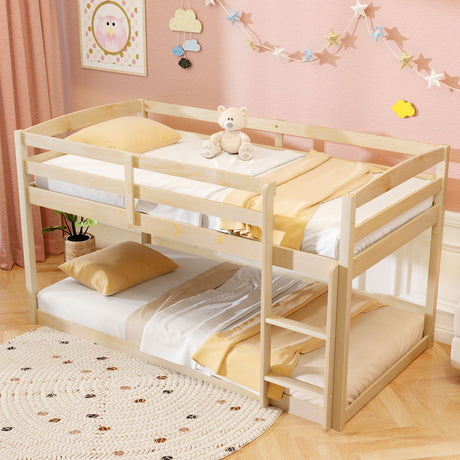 Twin Size Bunk Bed with High Guardrails and Integrated Ladder