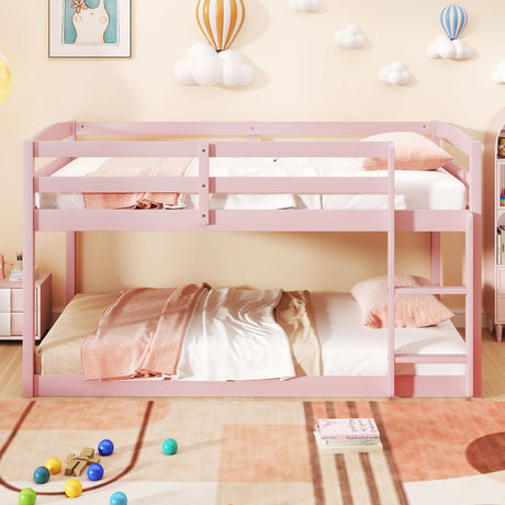 Low Profile Twin Over Twin Metal Bunk Bed with Full-length Guardrails