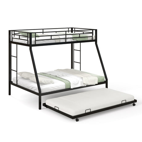 Twin Over Full Bunk Bed Frame with Trundle for Guest Room