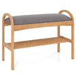 2-Tier Bamboo Shoe Bench with Padded Cushion and Shelf-Gray