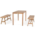 3 Pieces Acacia Wood Patio Dining Set Outdoor Rectangular Table and Benches with Slatted Seats