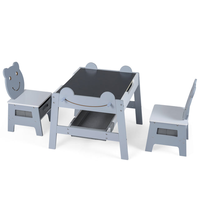 5-in-1 Toddler Table and 2 Chairs Cute Art Desk Set with Reversible Chalkboard Whiteboard - Grey is backordered and will ship as soon as it is back in stock.