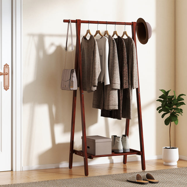 Folding Rubber Wood Clothes Hanging Rack Standing Garment Rack with Bottom Storage Shelf-Walnut - Walnut is backordered and will ship as soon as it is back in stock.