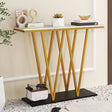 Gold Entryway Table 40 Inch Modern Console Table with Faux Marble Table and Metal Frame-White
