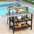 Outdoor Foldable Grill Table with Flip-Up Top and 2 Storage Shelves for Backyard Garden
