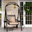 Outdoor Porch Swing with Removable Cushions and Side Tables for Garden Balcony-Black