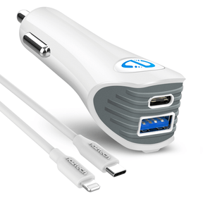 With the included 4ft USB-C to Lightning cable, this all-in-one charging kit lets you power your Apple devices at maximum speed while on the go. (Vehicle not included.)