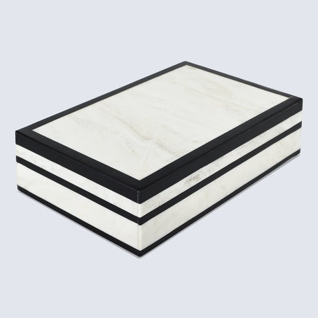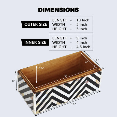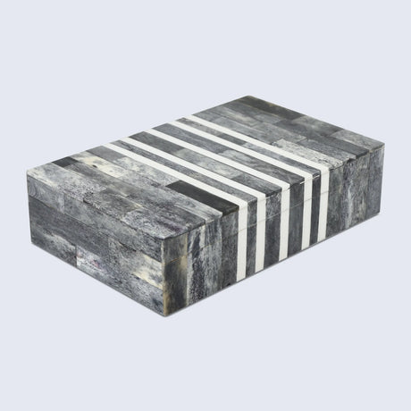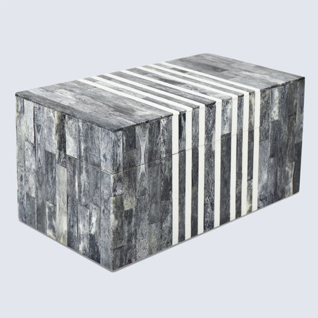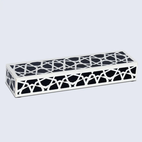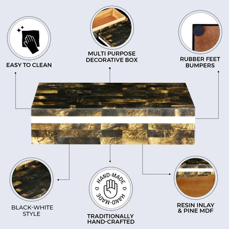 Decorative Storage Box Bone & Resin Inlay in 10x4x2.5 Inch, Black & White