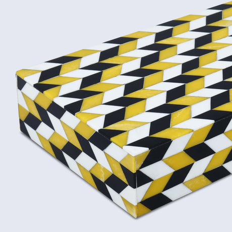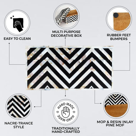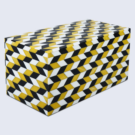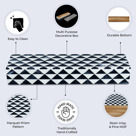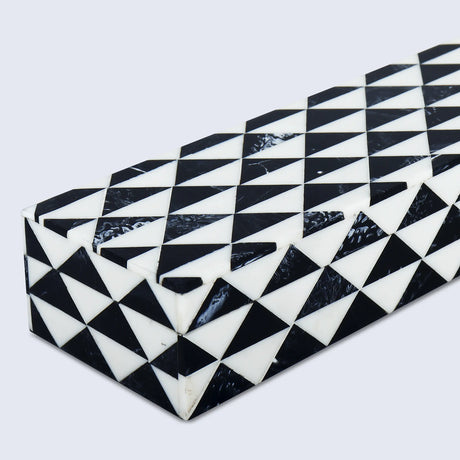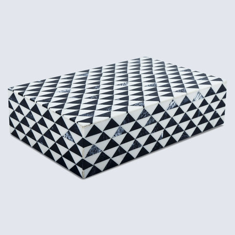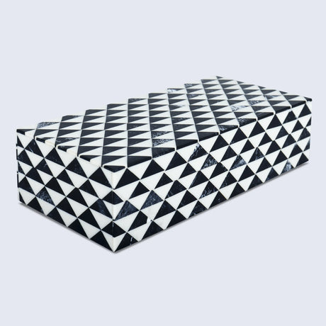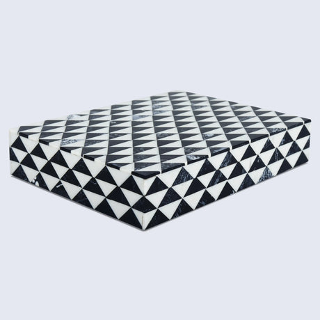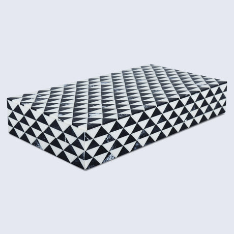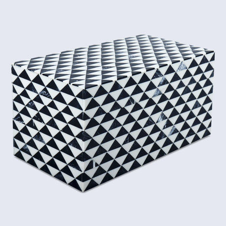 Triangle Pattern Decorative Storage Box, Resin Inlay in 7 Sizes, Black & White