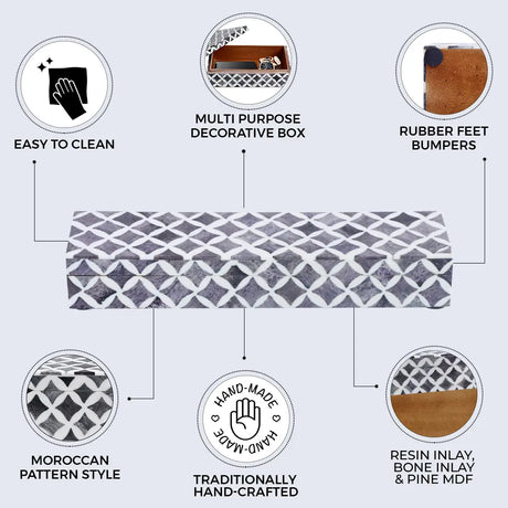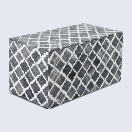 Moroccan Pattern Decorative Storage Box, Bone & Resin Inlay in 7 Sizes, Grey & White