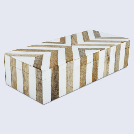 Chevron Pattern Decorative Storage Box, Bone Inlay in 6 Sizes, Brown & White