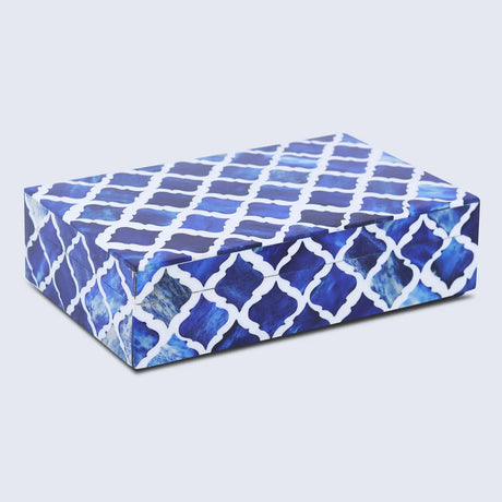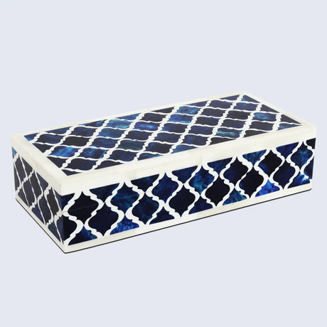 Decorative Storage Box Indigo Mosaic Bone & Resin Inlay in 2 Sizes