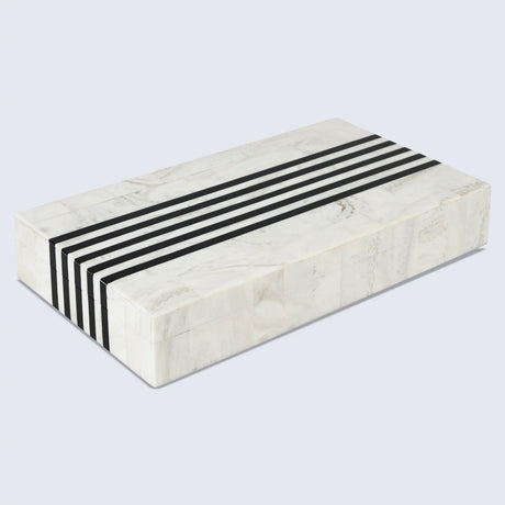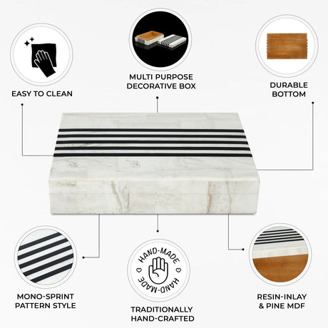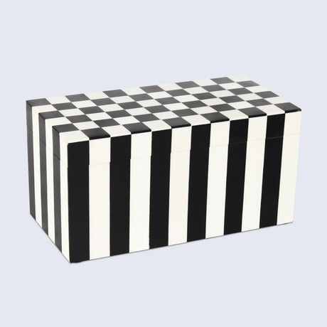 Mono Court Pattern Decorative Storage Box, Resin Inlay in 7 Sizes, Black-White