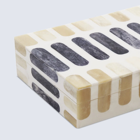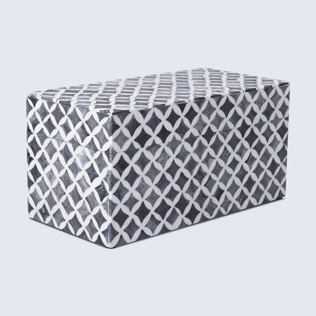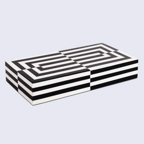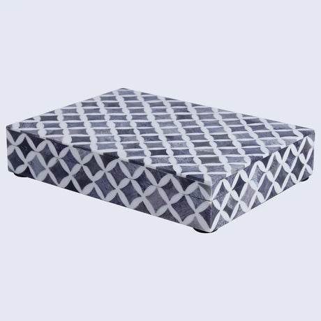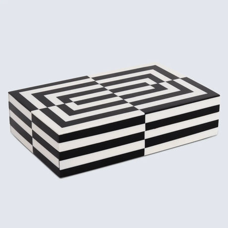 Mono Sprint Pattern Decorative Storage Box, Bone & Resin Inlay in 7 Sizes, Black-White