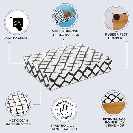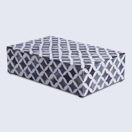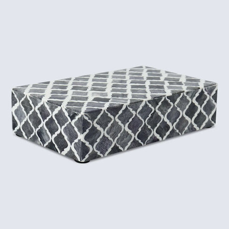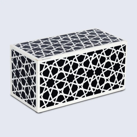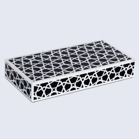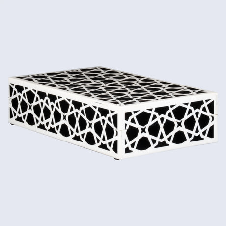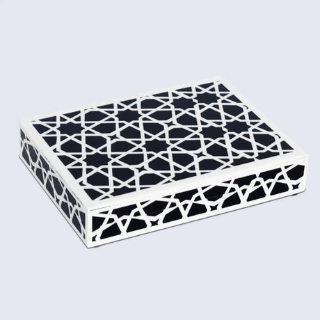 Zellij Pattern Decorative Storage Box, Resin Inlay in 7 Sizes, Black & White