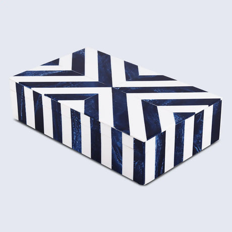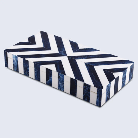 Chevron Pattern Decorative Storage Box, Bone Inlay in 6 Sizes, Blue & White