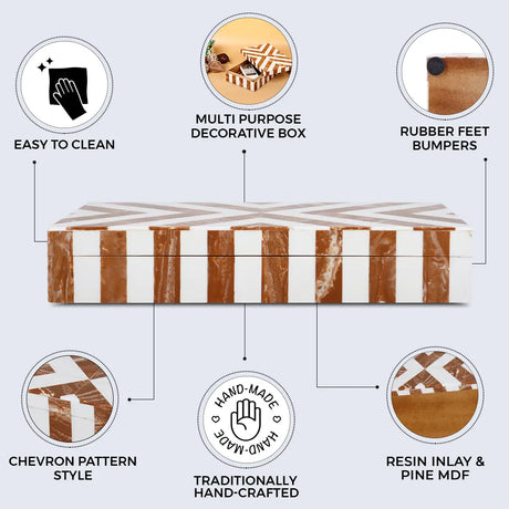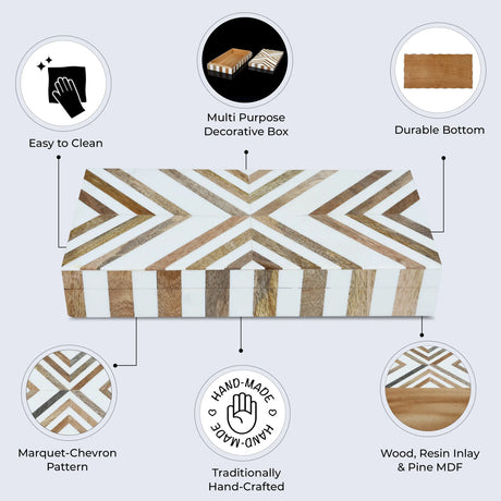 Marquet Chevron Resin & Wood Inlay Decorative Storage Box - 8 Sizes
