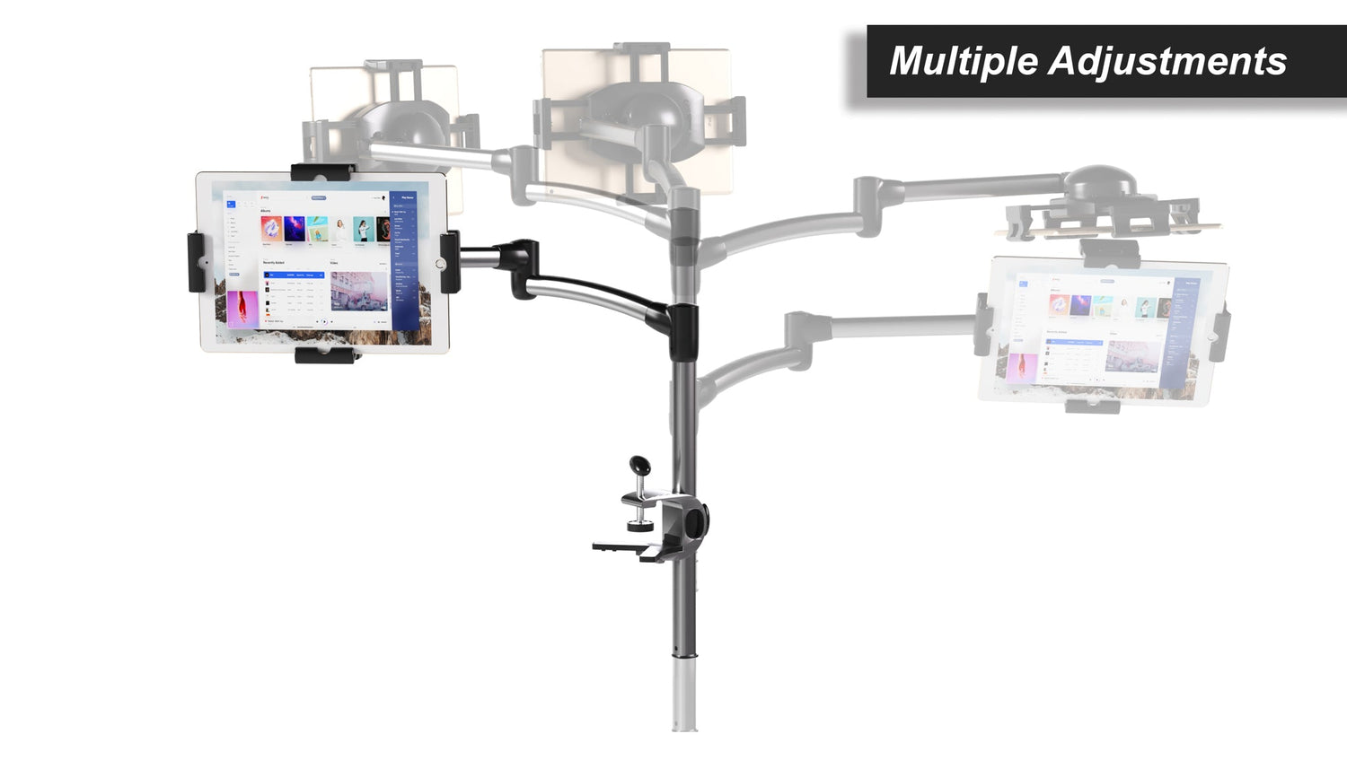Introducing the LEVO G2 Table Clamp Tablet Stand, a versatile and ergonomic solution designed to enhance your tablet experience across various settings. This stand securely holds tablets and eReaders from 5 1/8 to 13 1/2 inches wide and up to 3/4 inches thick accommodating most tablets with or without cases. Its patent-pending "V" clamp attaches to tables or counters with overhangs as small as 0.25 inches and up to 1.6 inches thick, providing stability without requiring significant edge space. The 5-axis articulating swing arm allows for effortless positioning, ensuring optimal viewing angles whether you're sitting, reclining, or lying in bed. Weighing only 3.5 pounds, this lightweight stand is easily portable, making it ideal for home, office, or travel use. With a sleek gunmetal gray finish, the LEVO G2 Table Clamp Tablet Stand seamlessly integrates into any environment, offering hands-free convenience for reading, streaming, or working.
