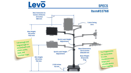 NEW - LEVO Gooseneck Tablet Floor Stand WITH Casters