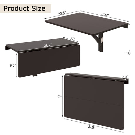 31.5 x 23.5 Inch Wall Mounted Folding Table for Small Spaces
