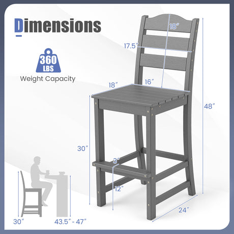 30 Inches Counter Height HDPE Bar Stool with Backrest and Footrest
