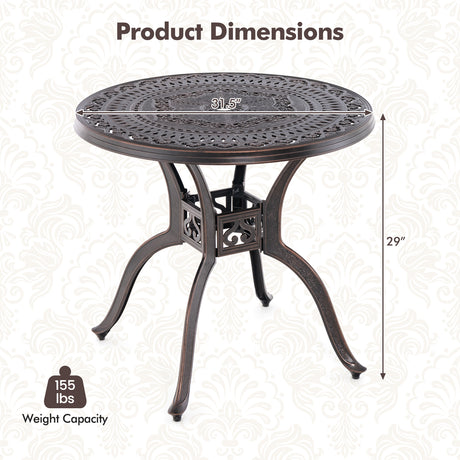 31.5 Inch Cast Aluminum Table Patio Round Dining Table with Umbrella Hole-Copper