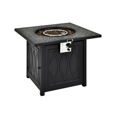 32 Inch Propane Fire Pit Table Square Tabletop with Lava Rocks Cover 50000 BTU-Black