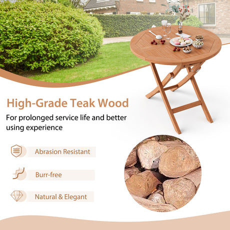 31.5 Inch Folding Patio Indonesia Teak Wood Round Coffee Table