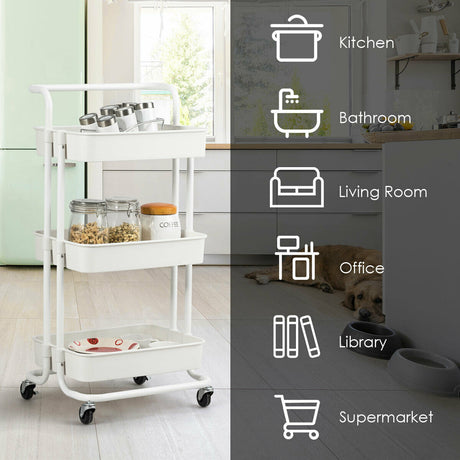 3-Tier Utility Cart Storage Rolling Cart with Casters