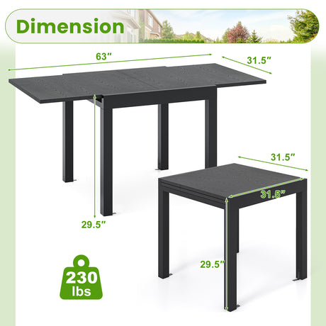 31.5 inches-63 inches Adjustable Patio Expandable Dining Table for 4-6 Person-Gray