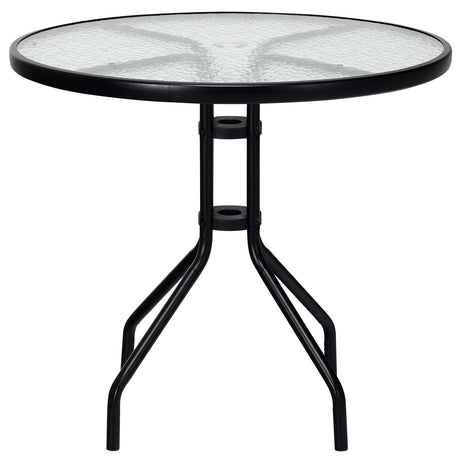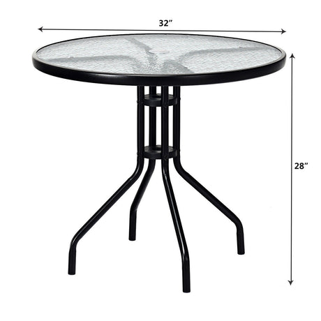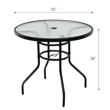 32 Inch Patio Tempered Glass Steel Frame Round Table with Convenient Umbrella Hole