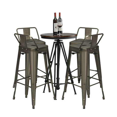 30 Inch Set of 4 Metal Counter Height Barstools with Low Back and Rubber Feet