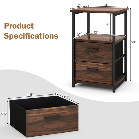 3-Tier Retro Nightstand with 2 Removable Fabric Drawers and Open Shelf-Walnut