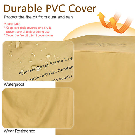 32 Inch 50 000 BTU Square Fire Pit Table with Lid and Lava Rocks-Brown