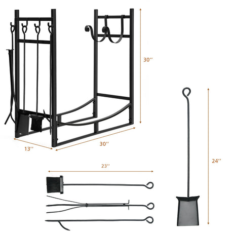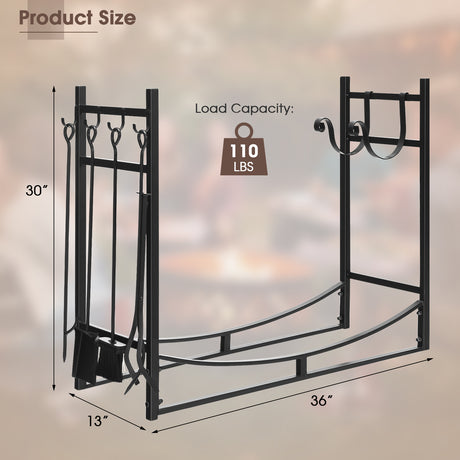 36 Inch Fireplace Log Holder with Kindling Holders and Shovel