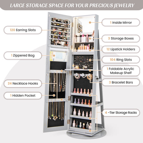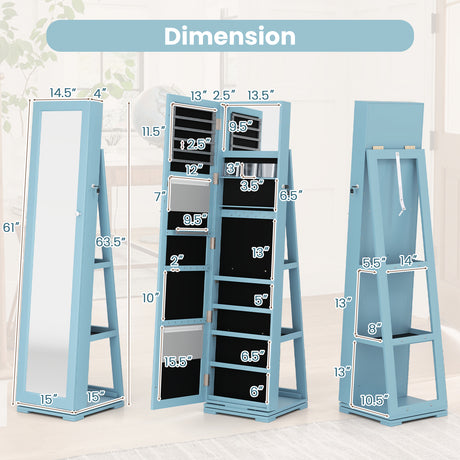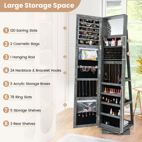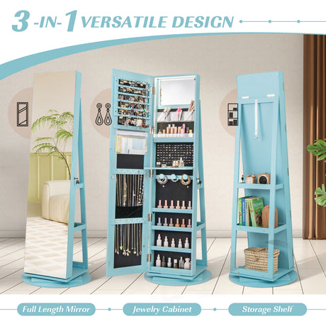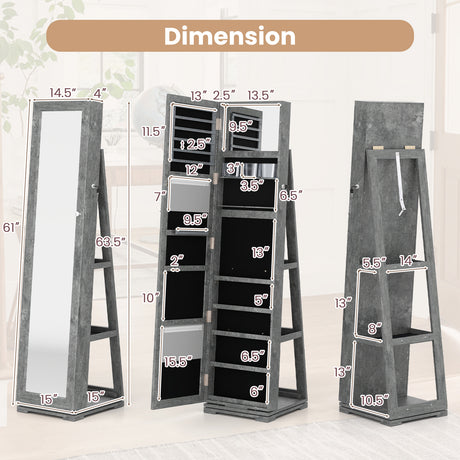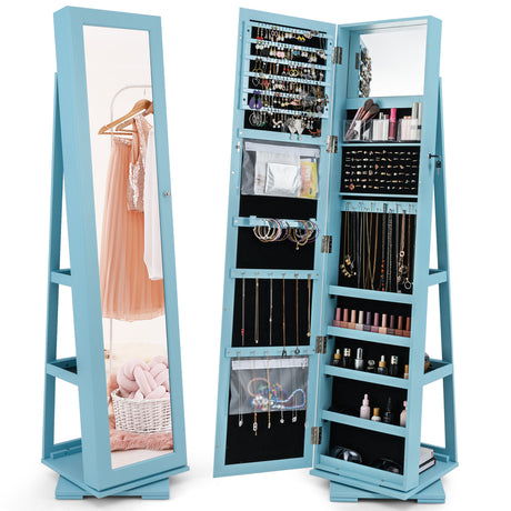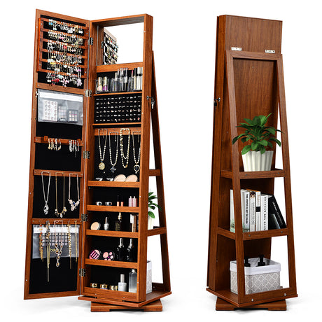 360° Rotatable 2-in-1 Lockable Jewelry Cabinet with Full-Length Mirror