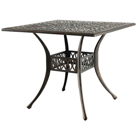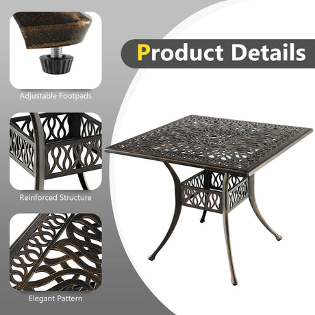 35.4 Inch Aluminum Patio Square Dining Table with Umbrella Hole-Bronze