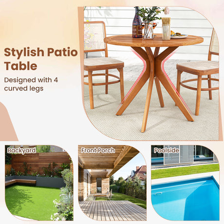 35.5 Inch Patio Wood Dining Table with Slatted Tabletop and Curved Legs