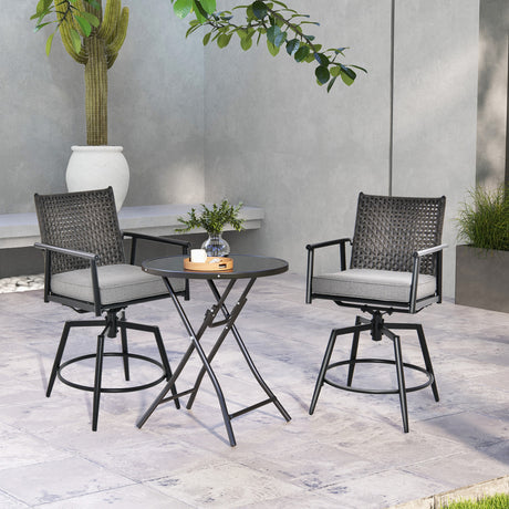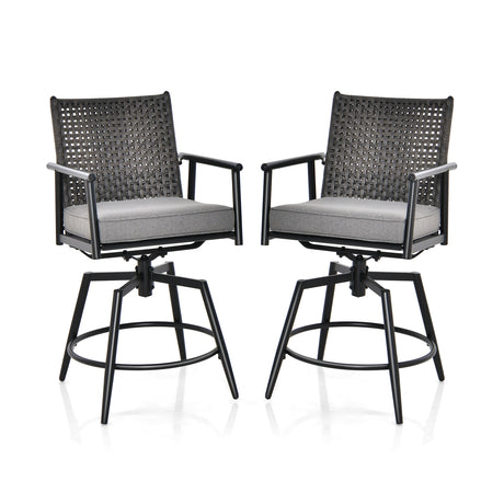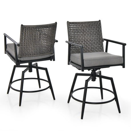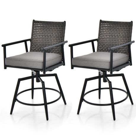 360 Degree Swivel Bar Stool Set of 2 with Metal Frame and PE Rattan Backrest-Black