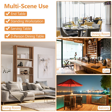 36 Inch 3-Tier Bar Table with Storage Metal Frame Adjustable Foot Pads for Dining Room
