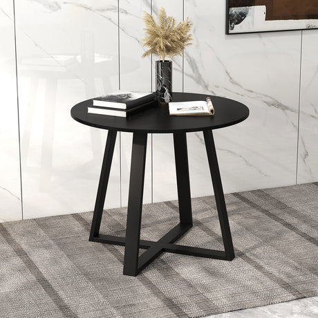 36 Inch Mid-Century Round Dining Table with Pedestal Base for Dining Room-Black