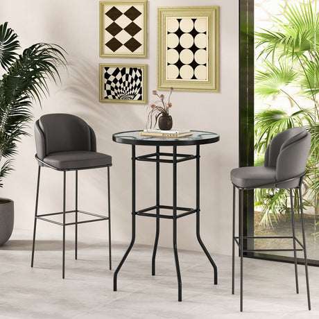 38 Inch Patio Bar Table with Tempered Glass Tabletop