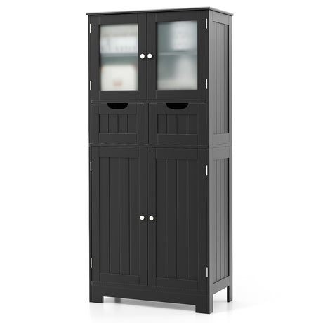 4 Door Freee-Standing Bathroom Cabinet with 2 Drawers and Glass Doors