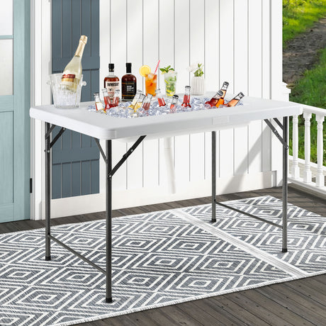 4 Feet Folding Ice Bin Table with Skirt for Camping Picnic Wedding-White